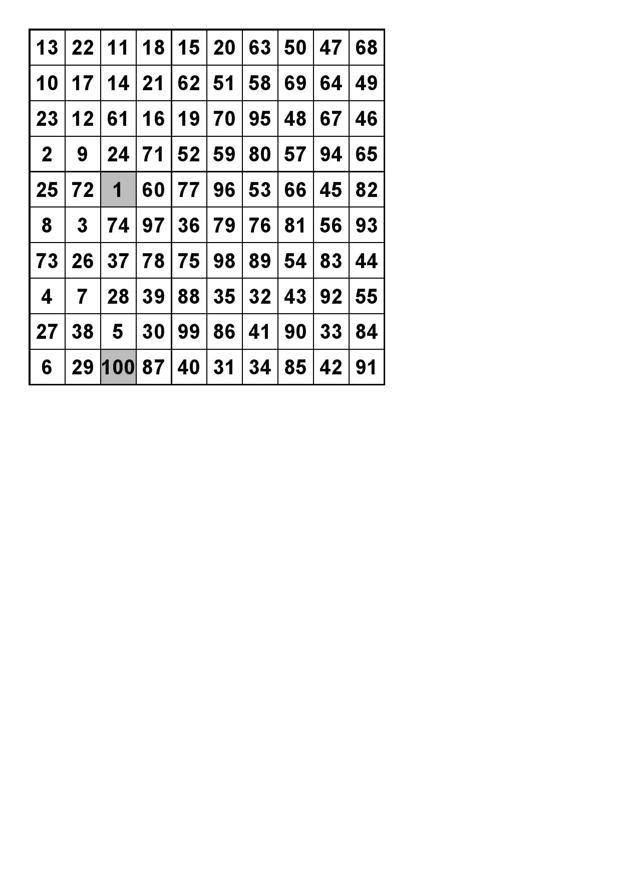 Number Squares Book >>> | Online Number Squares >>> | Number Squares instructions