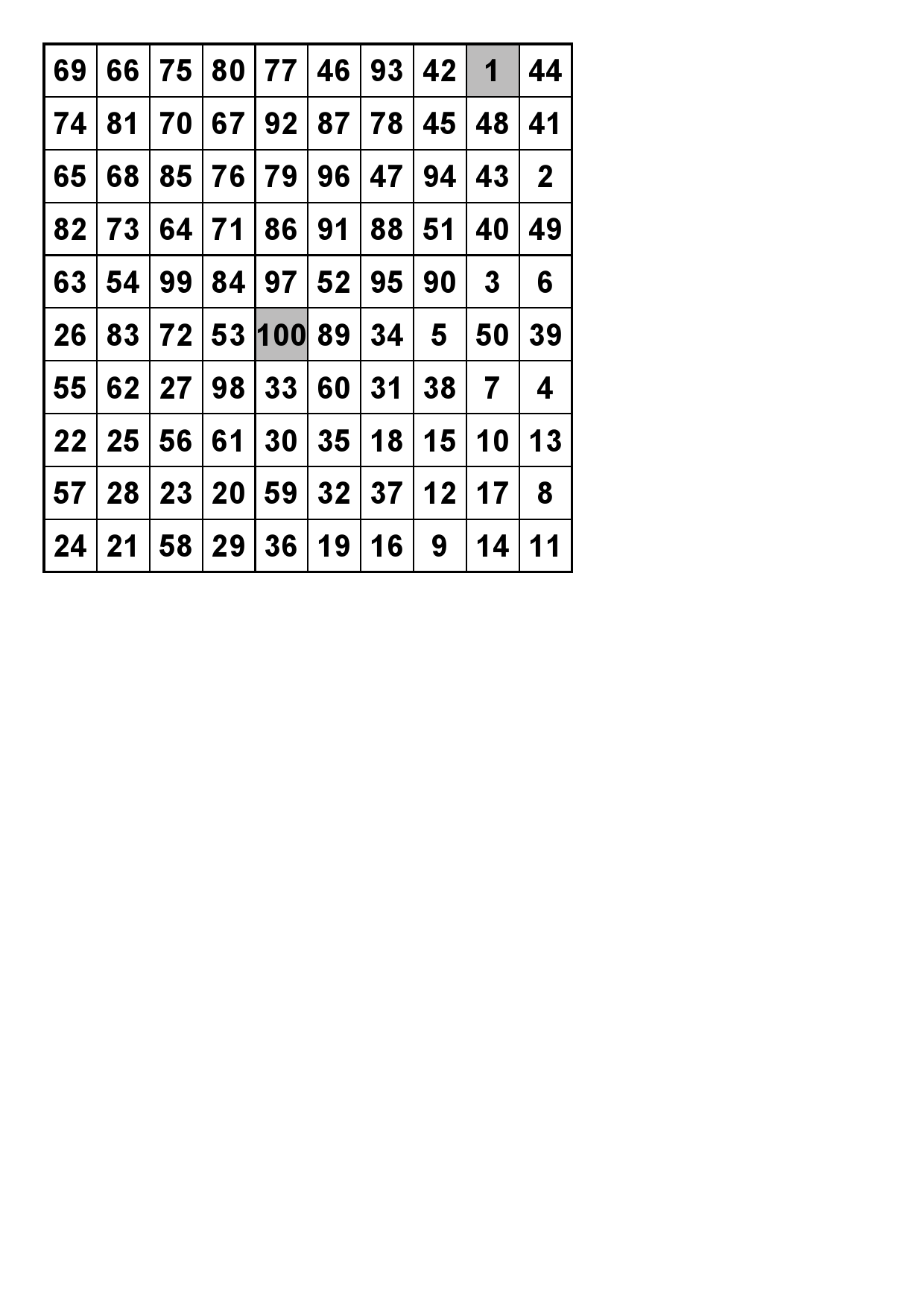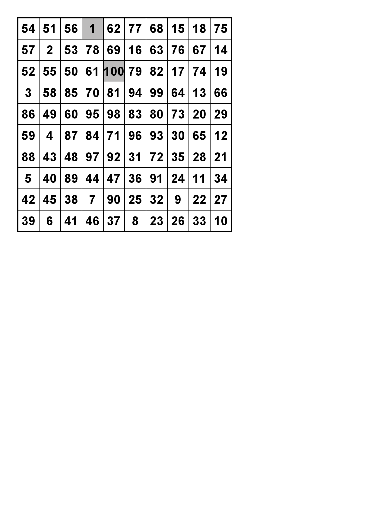 Number Square 1 Solution
