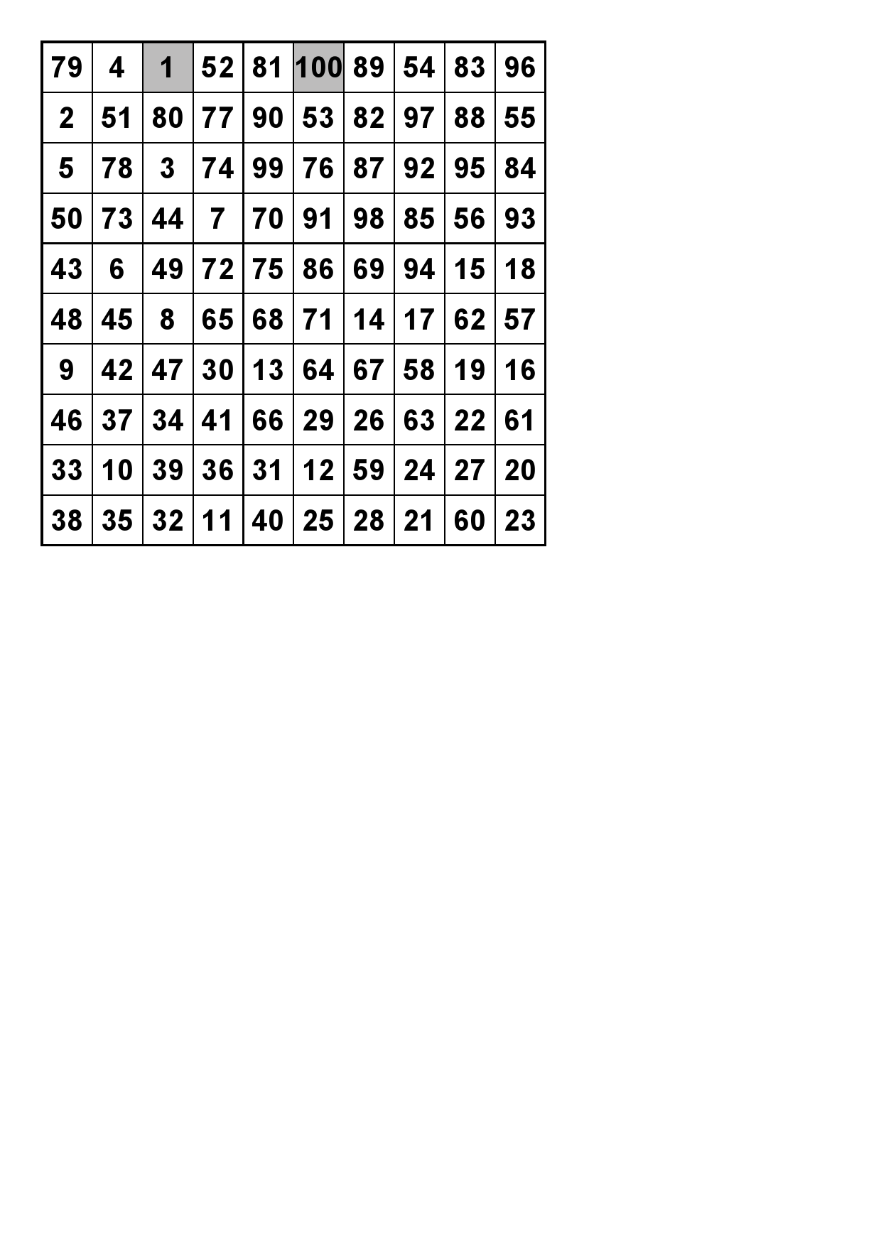 Number Square 1 Solution