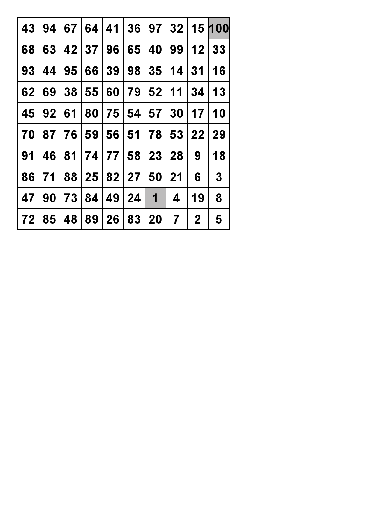 Number Square 1 Solution