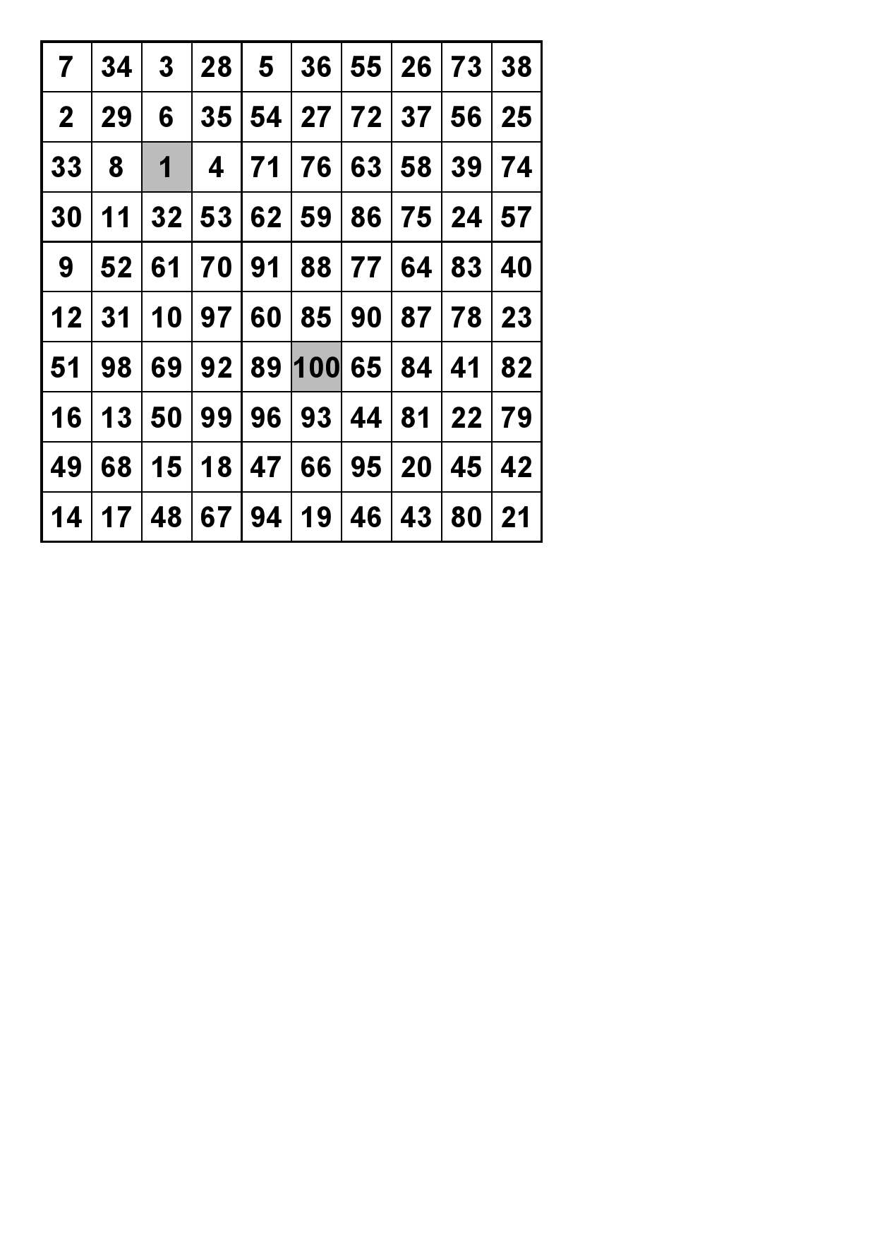 Number Squares Book >>> | Online Number Squares >>> | Number Squares instructions