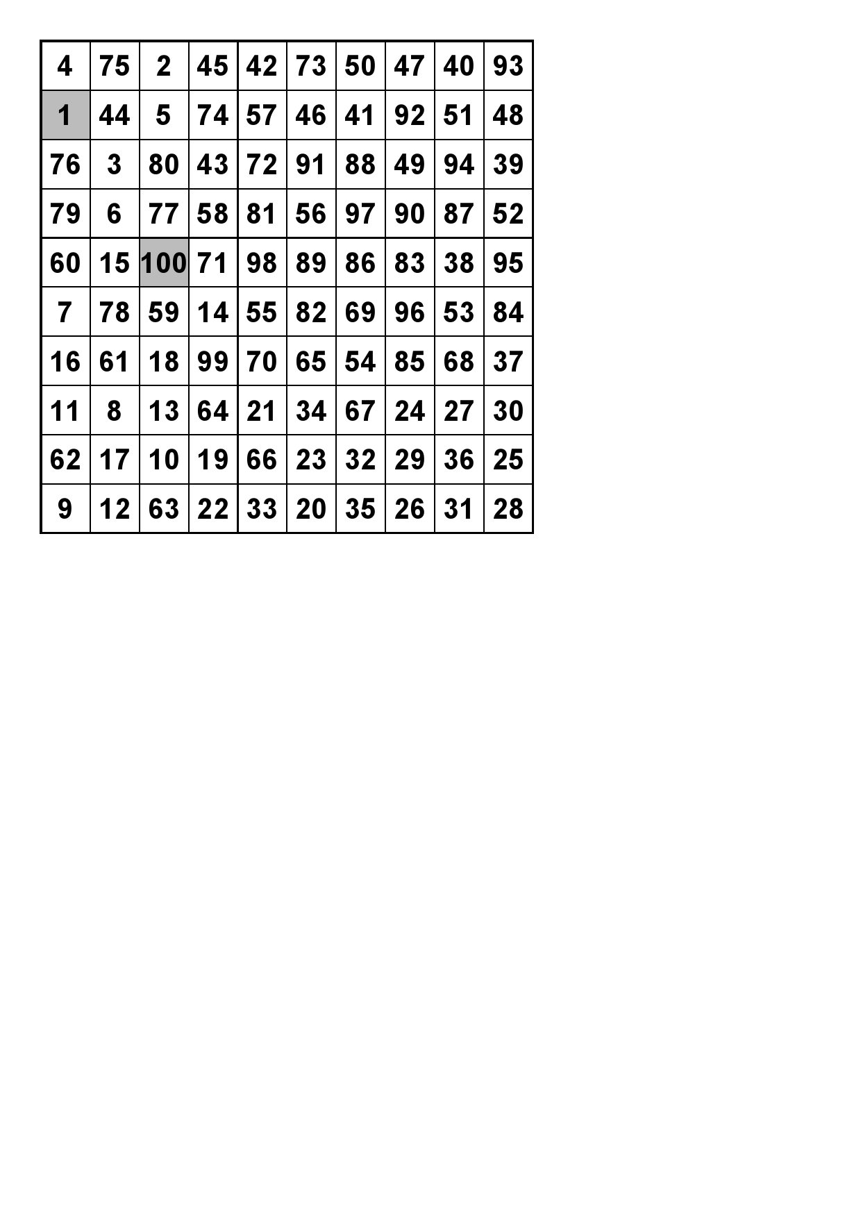 Number Square 1 Solution