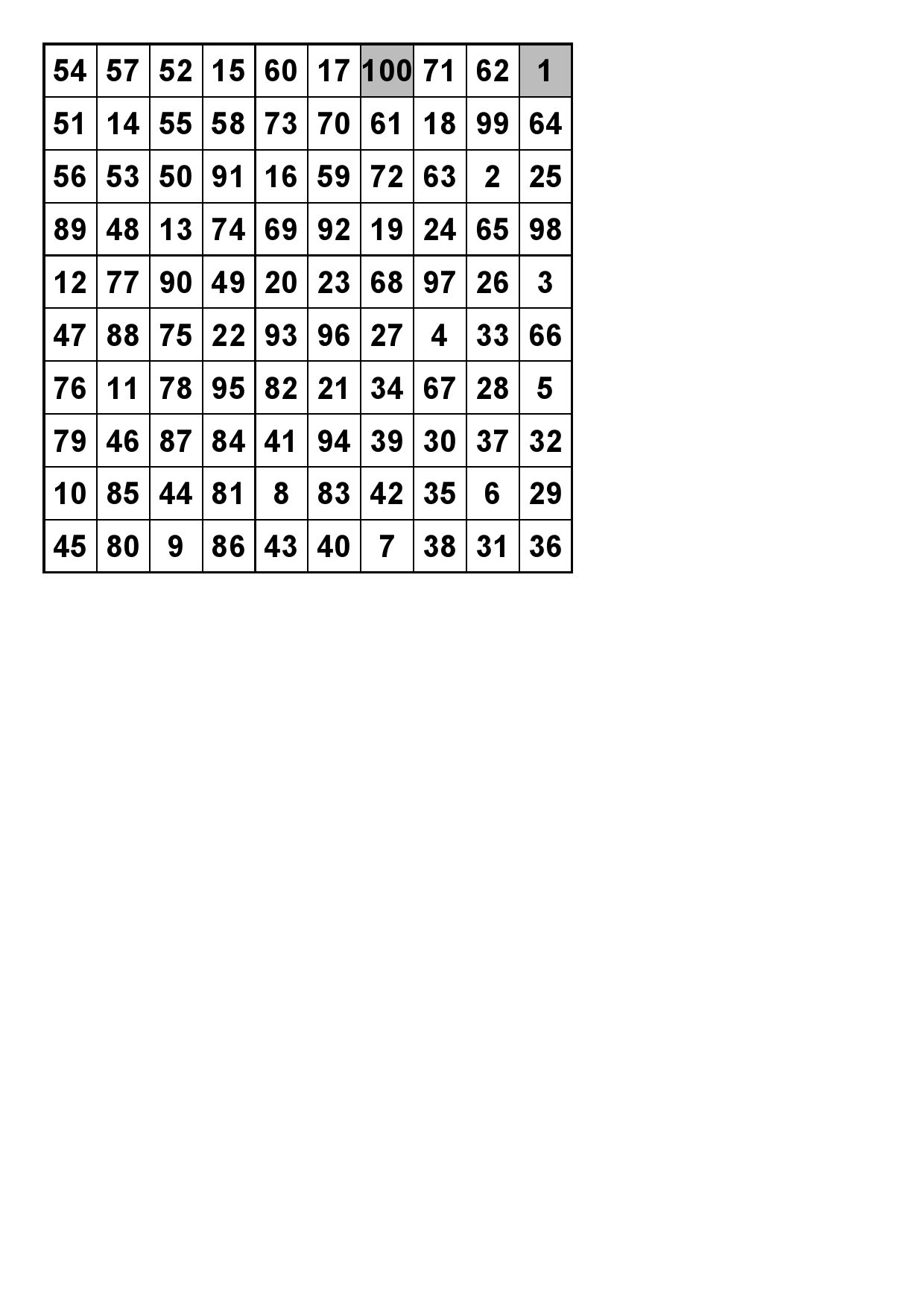 Number Squares Book >>> | Online Number Squares >>> | Number Squares instructions