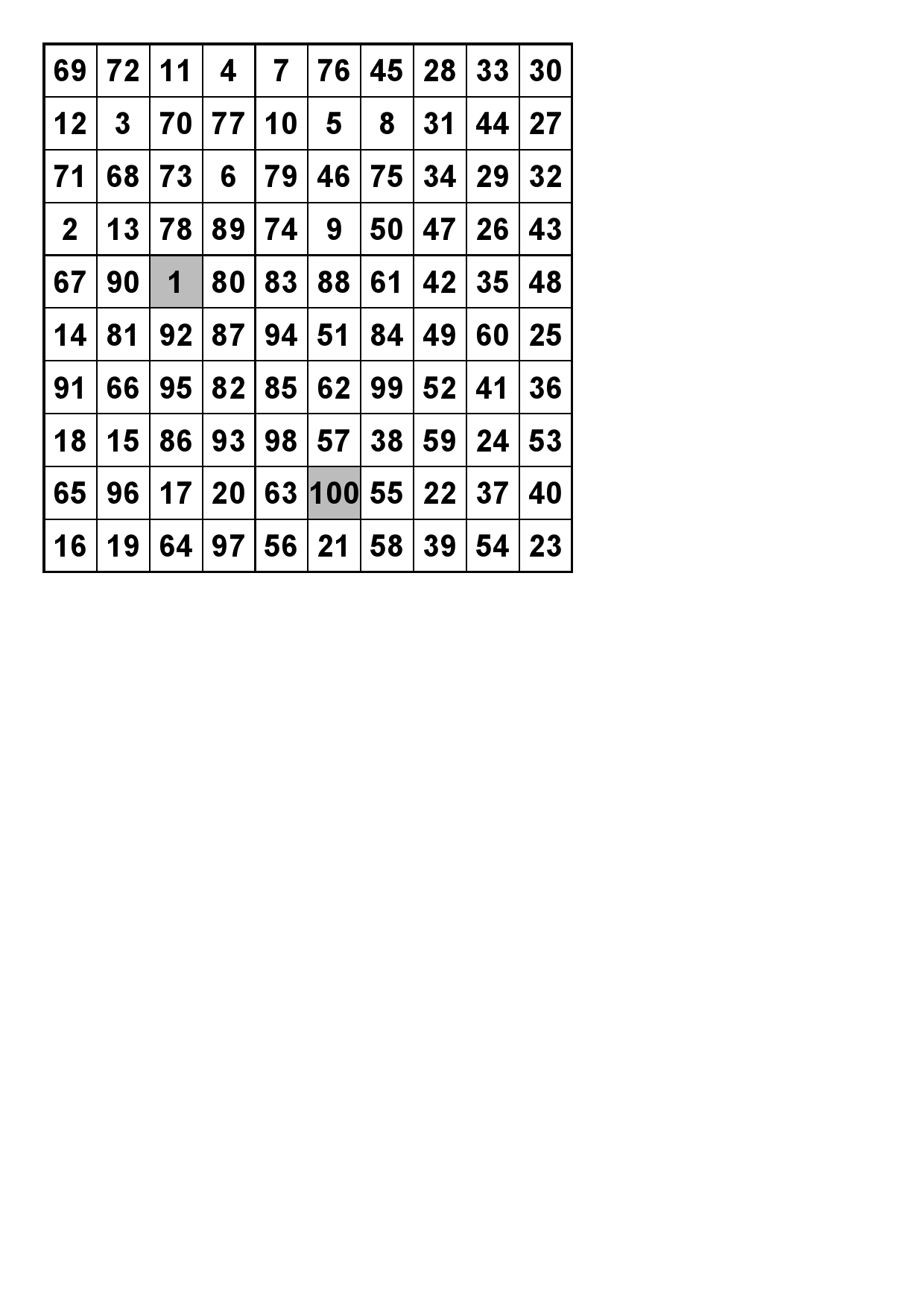 Number Squares Book >>> | Online Number Squares >>> | Number Squares instructions
