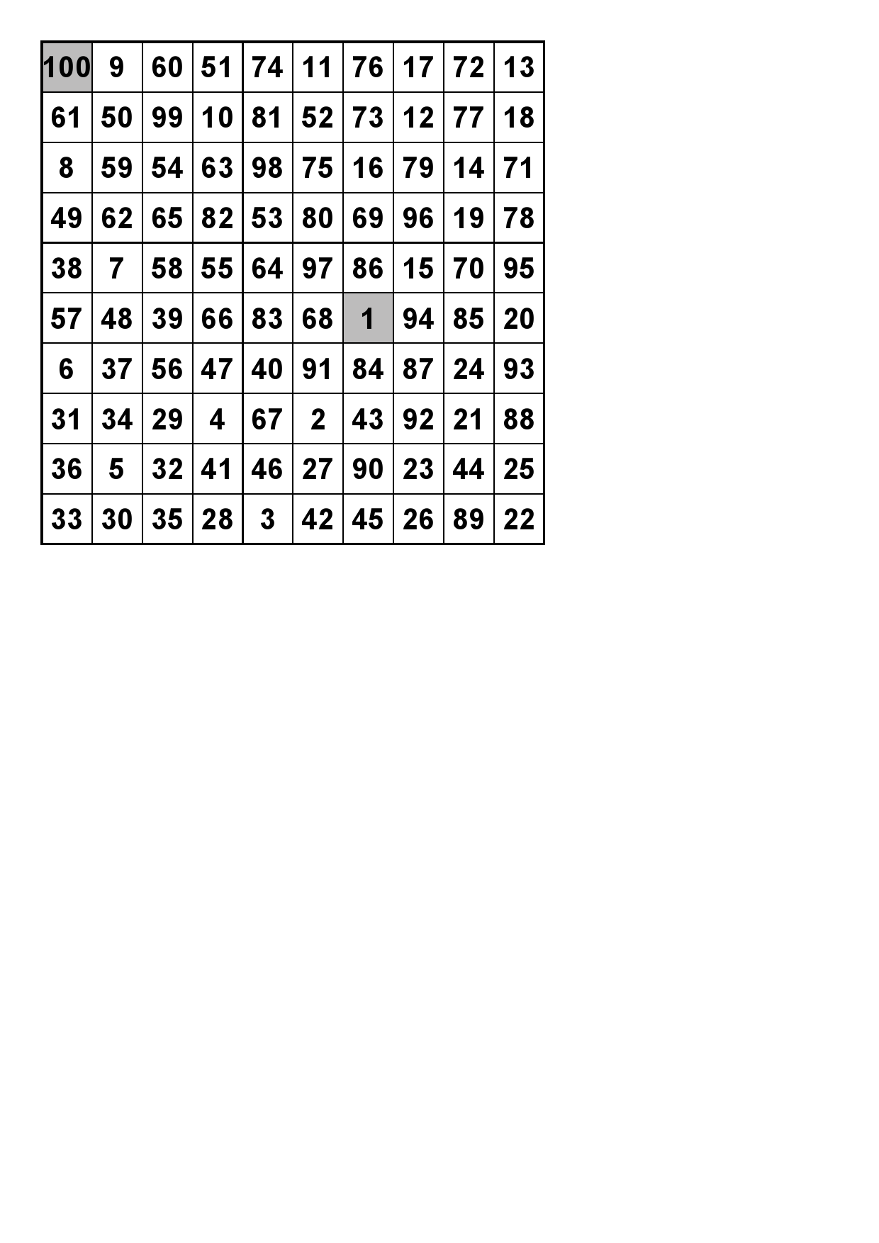 Number Squares Book >>> | Online Number Squares >>> | Number Squares instructions