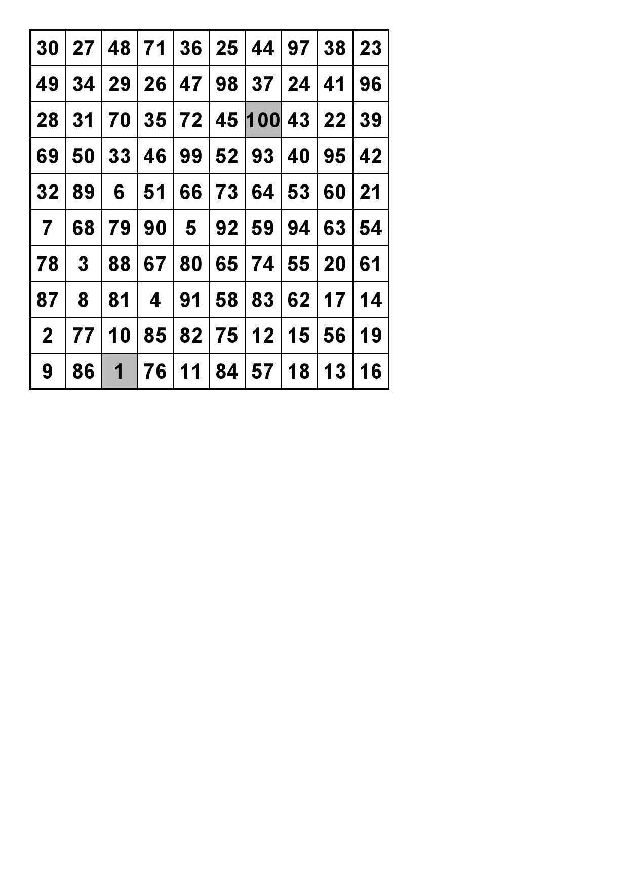 Number Squares Book >>> | Online Number Squares >>> | Number Squares instructions