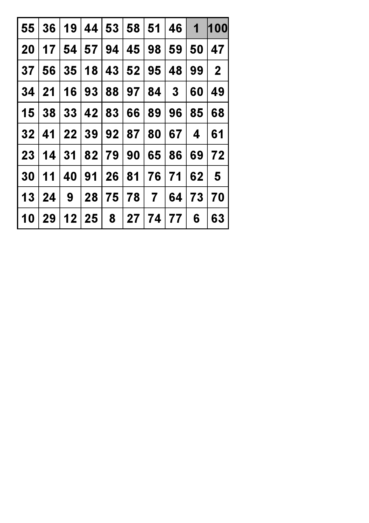 Number Squares Book >>> | Online Number Squares >>> | Number Squares instructions