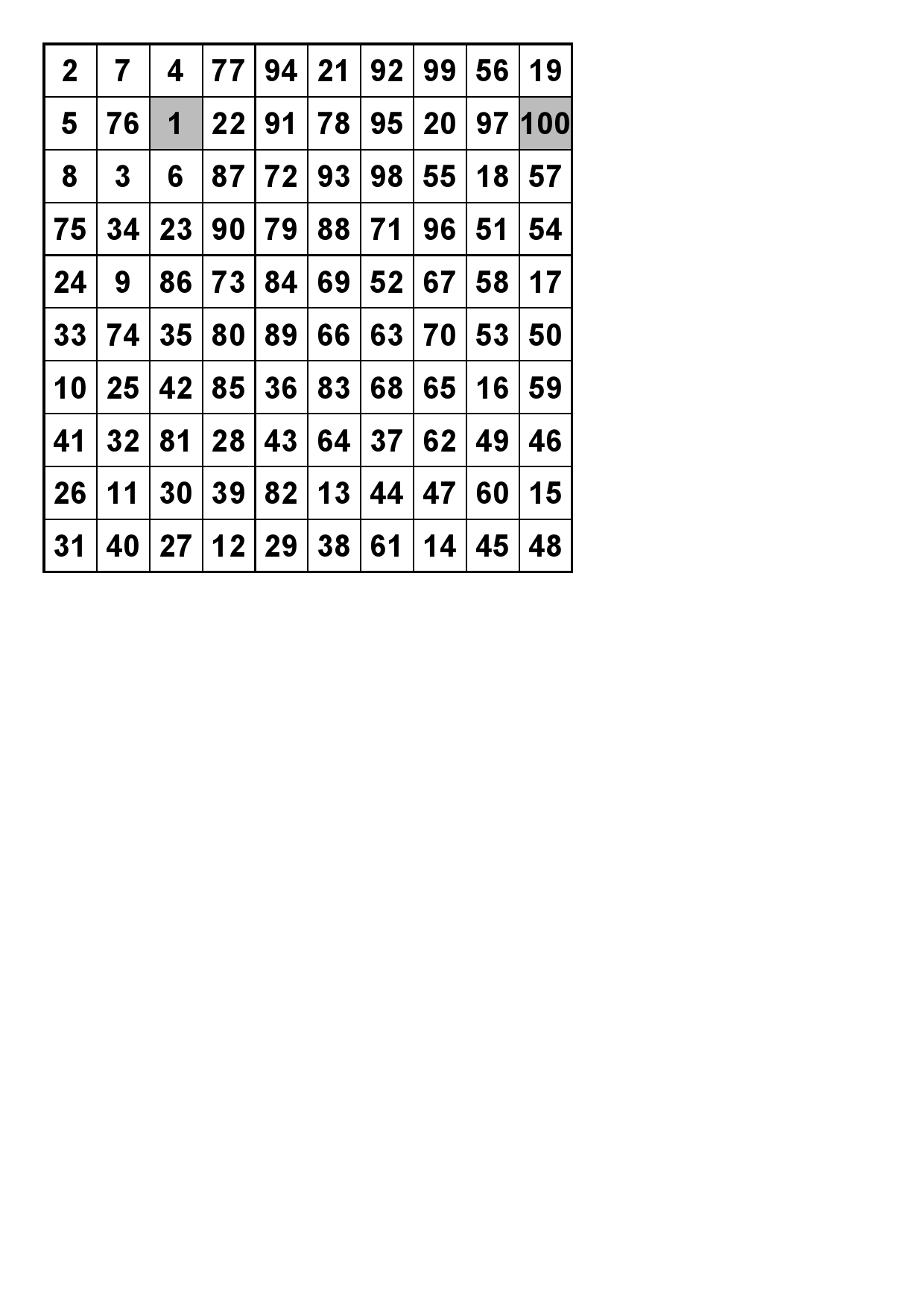 Number Squares Book >>> | Online Number Squares >>> | Number Squares instructions