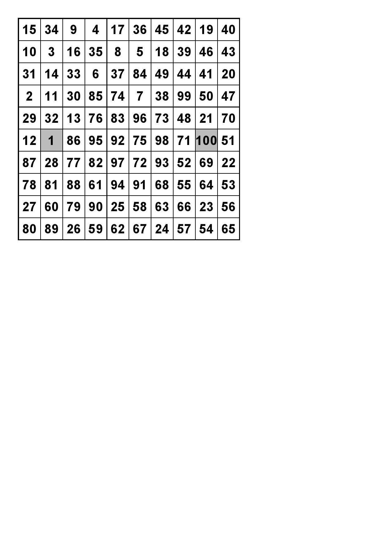 Number Squares Book >>> | Online Number Squares >>> | Number Squares instructions