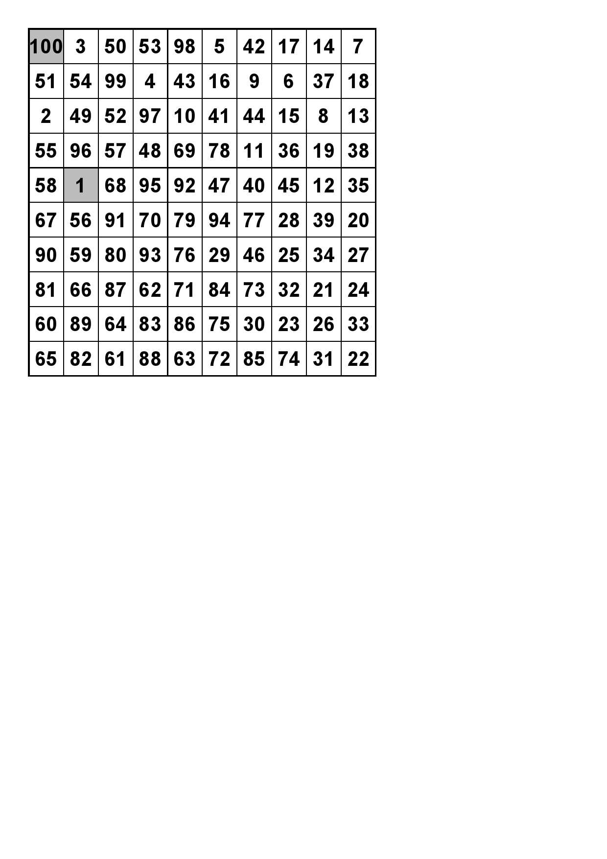 Number Square 1 Solution