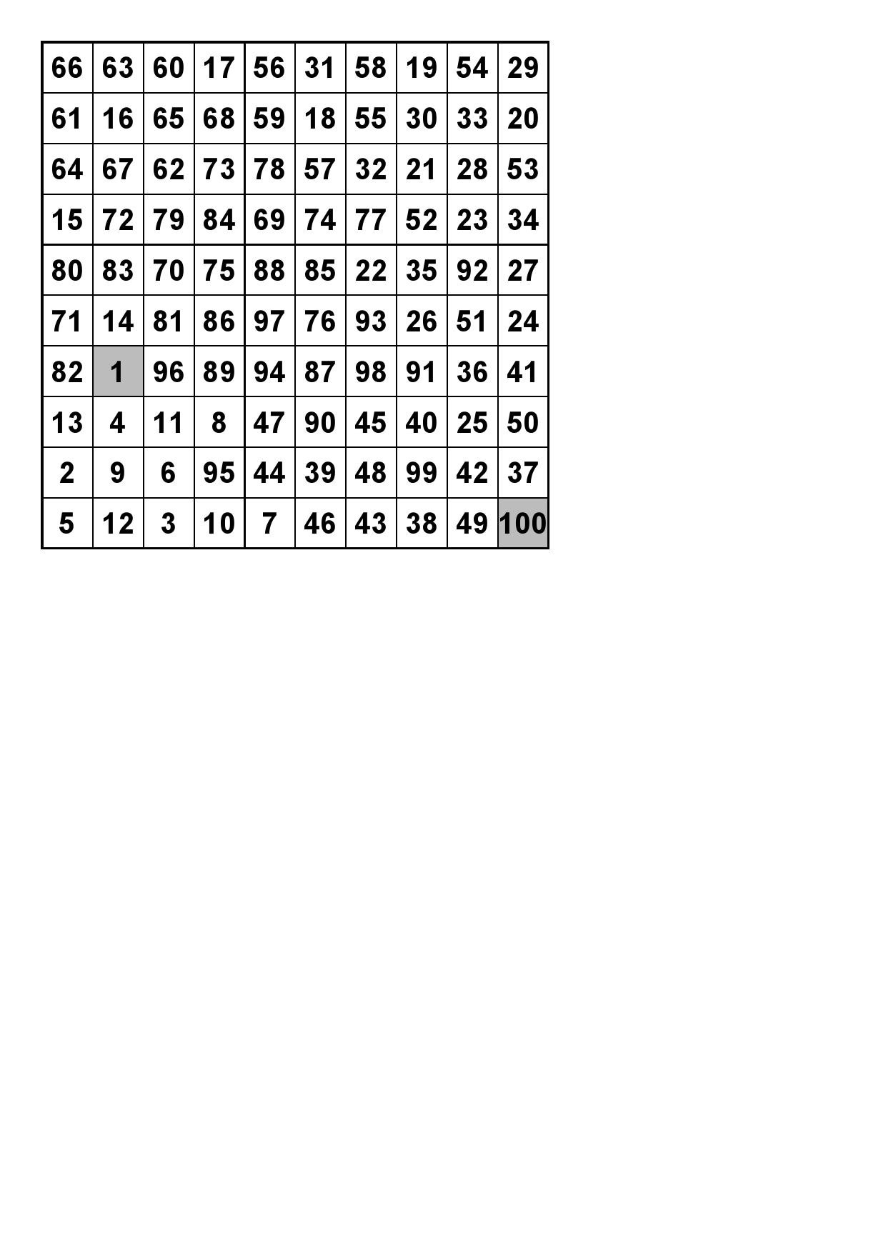 Number Squares Book >>> | Online Number Squares >>> | Number Squares instructions