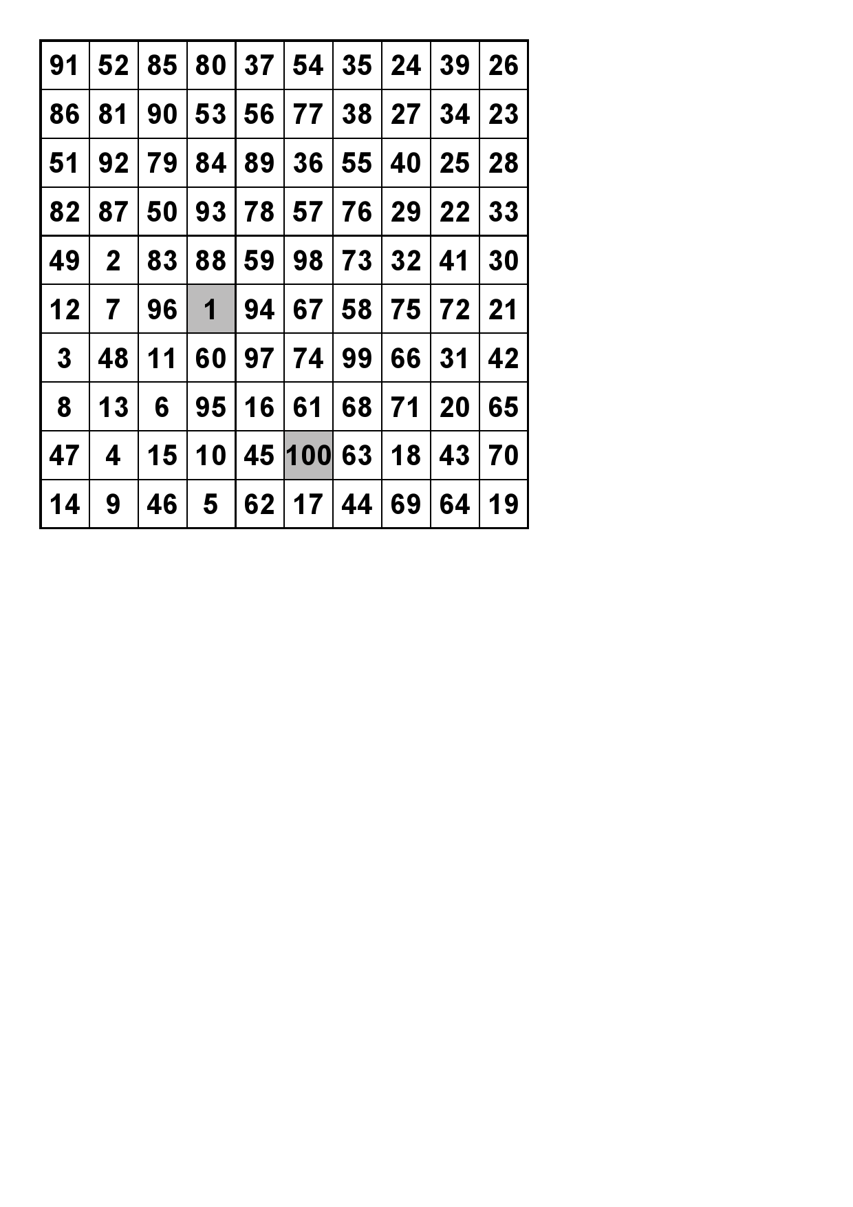Number Squares Book >>> | Online Number Squares >>> | Number Squares instructions