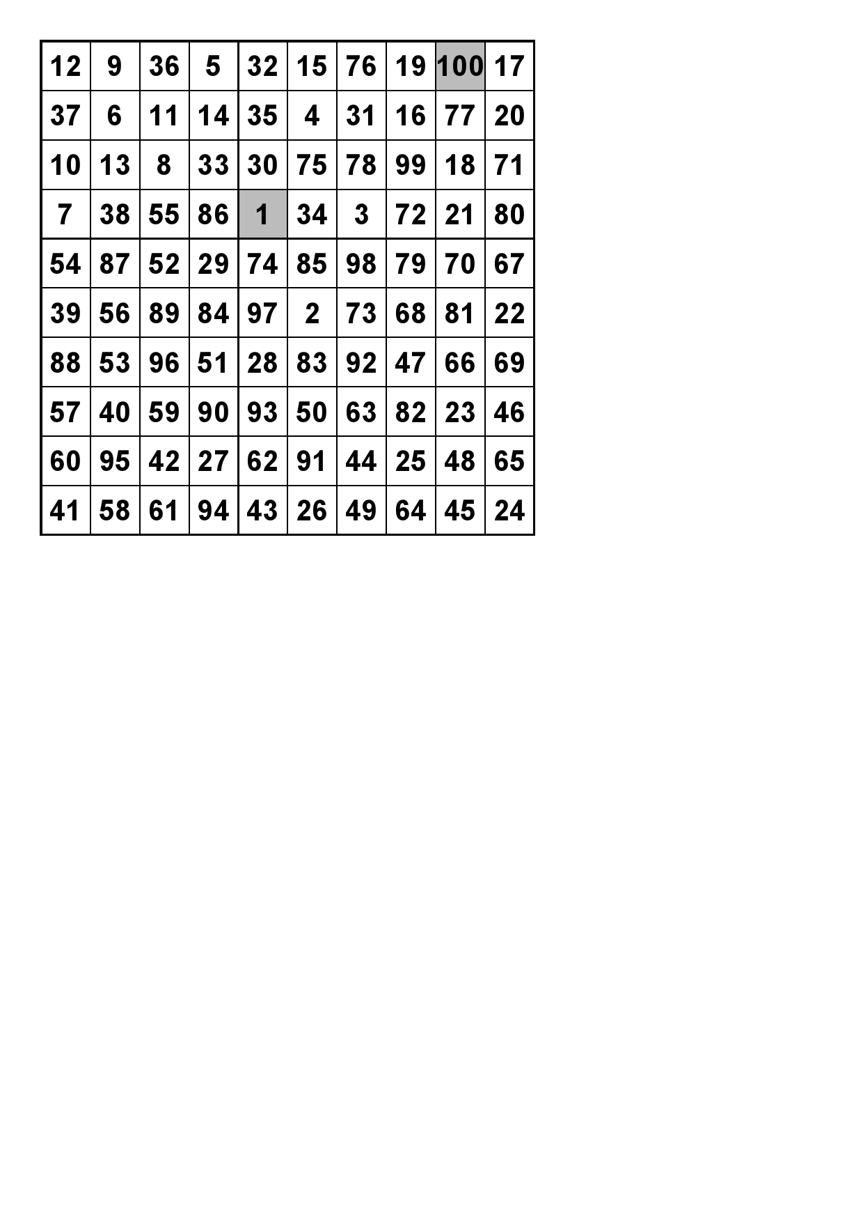 Number Squares Book >>> | Online Number Squares >>> | Number Squares instructions