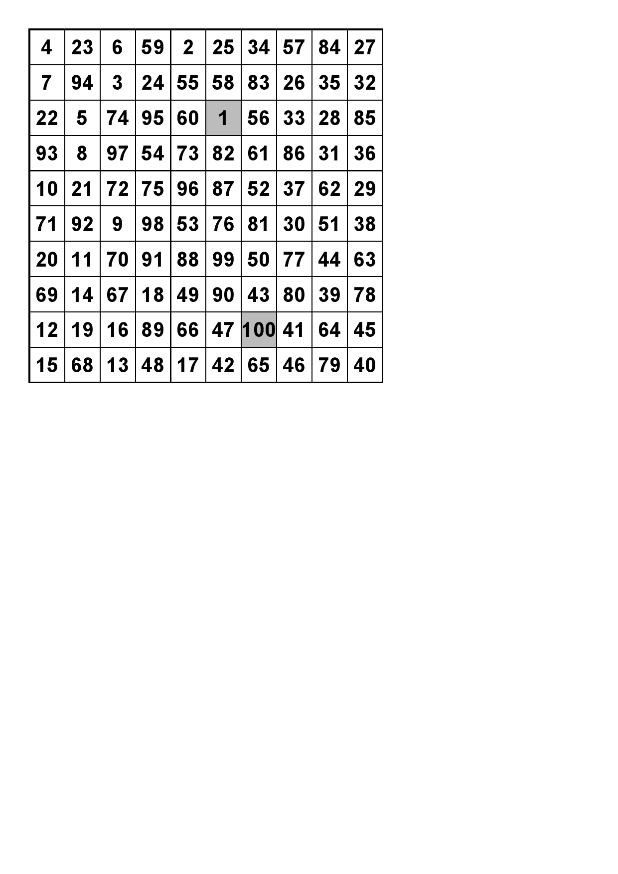Number Squares Book >>> | Online Number Squares >>> | Number Squares instructions